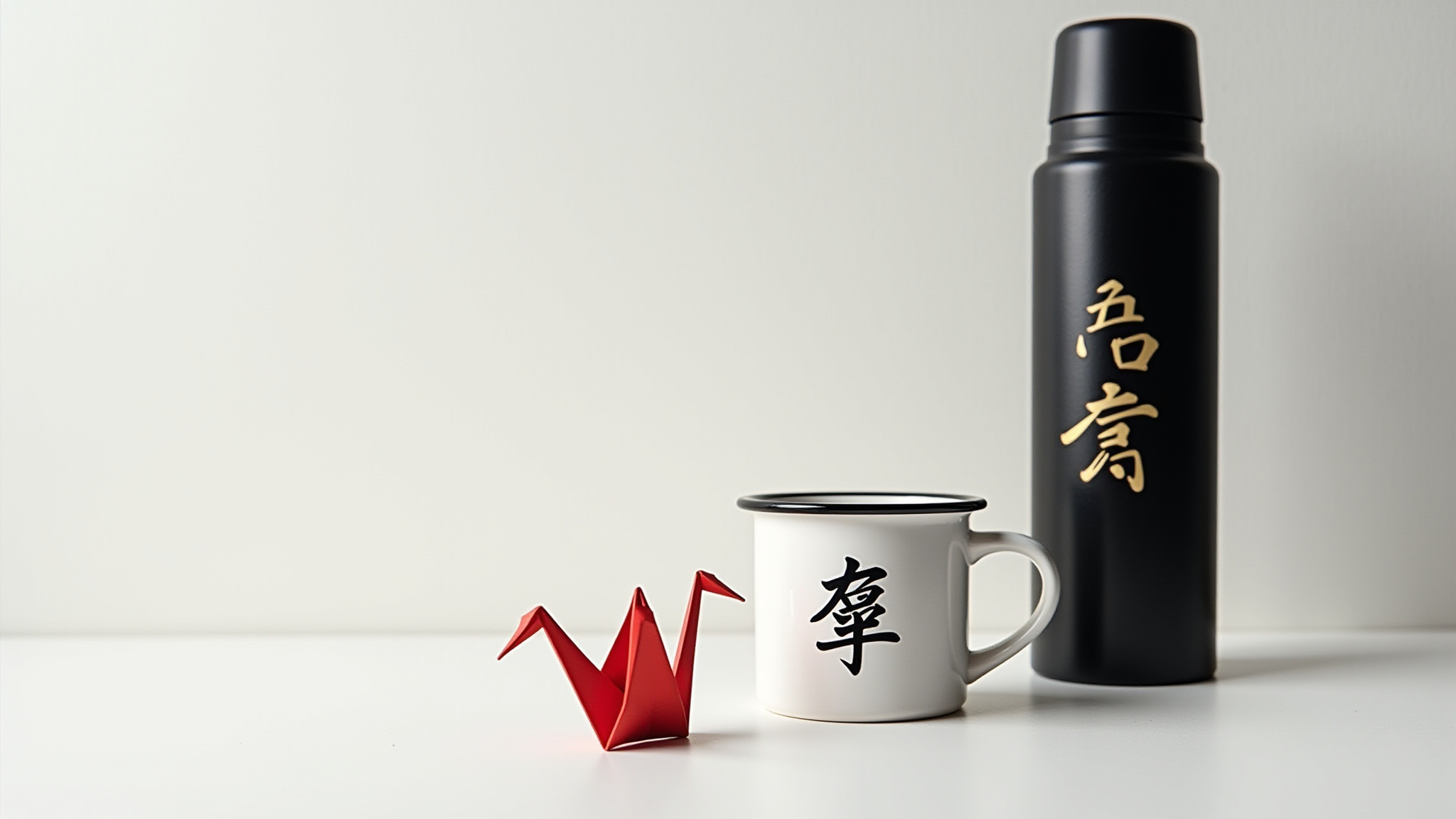 A KURONEKO STORE oferece produtos únicos, como canecas e garrafas térmicas, personalizadas com kanjis. Cada item reflete a cultura japonesa, proporcionando uma experiência enriquecedora.